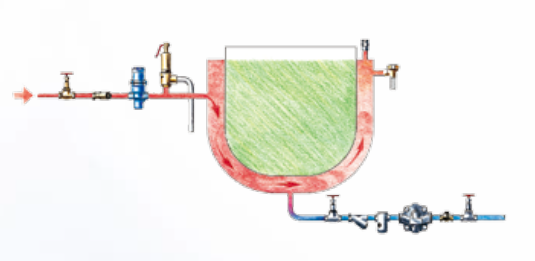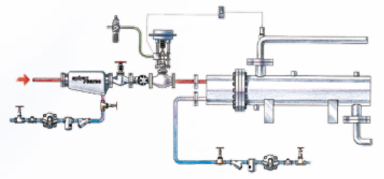 对于带温度控制的热交换器,浮球疏水阀是变负荷工况的理想选择。起机阶段空气迅速排放,系统升温迅速。