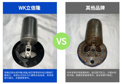 其二,蒸汽疏水阀阀座的设计,阀座的好坏是疏水阀使用的关键哦。立信隆蒸汽疏水阀阀座采用六角形规格,其中材料使用的是STL硬质合金制造,在疏水阀长时间连续排水时也不会出现阀座损坏。普通的阀座则是用圆形201材质,长时间运作里面的阀座很容易损坏,就会导致不排水,或者积水情况,到时设备不升温,泄漏蒸汽。