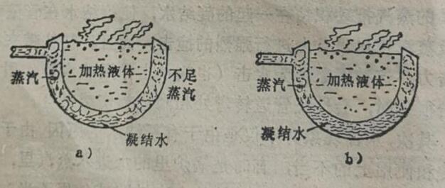 蒸汽疏水阀用蒸汽做功的蒸汽设备(特别是热交换器等间接加热的装置),都是为了有效的利用蒸汽(饱和蒸汽)的潜热。在这些装置内滞留过多的凝结水与加热面进行接触,妨碍了蒸汽与加热面接触,使热交换器等蒸汽使用设备的产生效率显著降低(参照图2)。另外,设备上、下加热不均匀也会影响产品质量,使蒸汽使用设备的运转效率显著降低,设备性能也会降低。