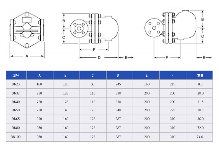 产品口径:DN25-DN100