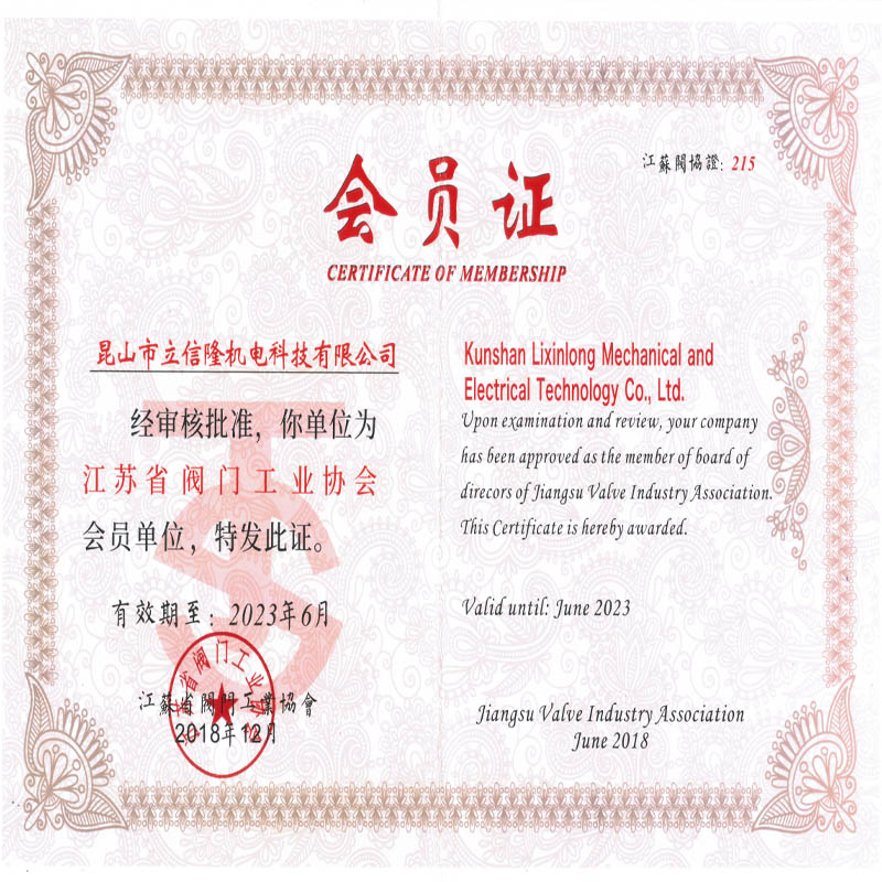 恭喜昆山立信隆机电科技有限公司成功入驻江苏省阀门工业协会