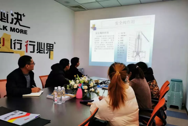 开课之后王老师非常认真的从安全阀的种类及安装方向、蝶阀的作用等方面为现场学习的员工们进行了细致的讲解。安全阀的作用,压力超过规定值就会发出警报作用,而防止压力超出范围,起到保护作用。整定压力是为了弹簧,合适的弹簧才不会导致在使用期间出现压力不足等问题??翁弥型且卜追拙偈痔岢隽俗约何侍?,王老师耐心听取并回答了同学们问题。