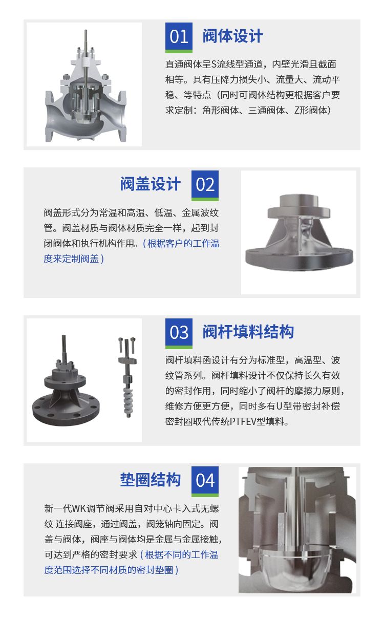 低温调节阀采用低温伸长型阀盖适用于在低温状态下的介质(如液氧、液氮)有保护填料和执行机械功能,标准材料是304或316不锈钢,----可以根据工况采用不同膨胀系数的材料。